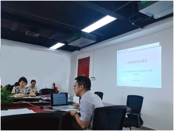 随后,外语系陈曦主任就高考招生综合改革、本科教育中心地位、一流本科专业建设目标和差距、“新文科”建设与“以学生发展为中心”的教学模式改革等话题展开介绍,梳理了目前专业建设中存在的显著问题,提出了建设的方向和抓手,并就如何进一步优化2019版本科专业人才培养方案、切实进行教学模式改革提出了具体的设想。英语专业老师就课程设置展开深入研讨,提出了很多宝贵意见。