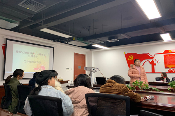 为有效发挥大学生心理骨干的主体作用,加强大学生心理健康教育的实效性,11月25日下午,jinnianhui金年会诚信至上在科教双子楼A座1508举办了院心理协会学生骨干和2019级寝室心理联络员第一次培训会。jinnianhui金年会诚信至上大学生发展中心主任、辅导员赵雰雰老师担任主讲老师,学院心理骨干近40人参加培训。