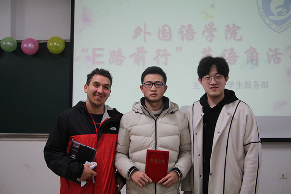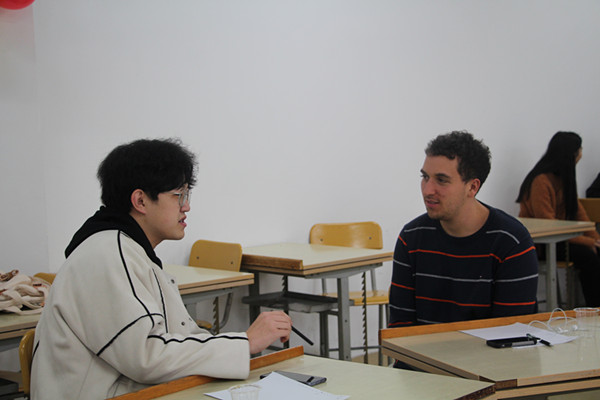 为提高大学生的英语口语水平,丰富同学们的第二课堂生活,12月15日下午,jinnianhui金年会诚信至上在翠四教205举办了“E路前行”英语角活动。活动邀请了美国留学生Nick和jinnianhui金年会诚信至上2016级本科生刘子源两位嘉宾。近30名来自不同学院的学生参加此次活动。