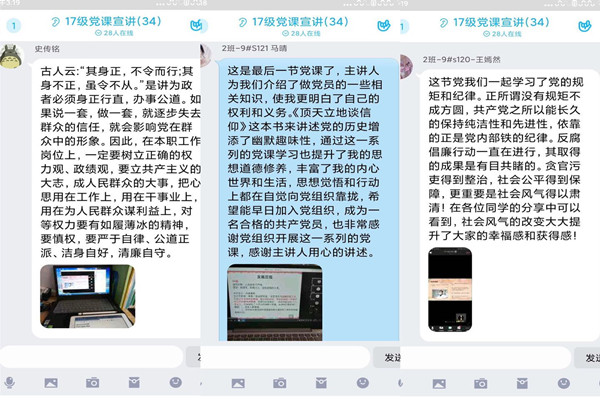 本次线上系列党课超越了空间的障碍,灵活运用了先进、多样的授课方式。通过七次主题党课,同学们进一步明确了自己的入党动机,提高了党性修养,主讲人也通过自学和授课提高了自己的思想境界。授课过程中,同学们积极互动、踊跃发言,每次课程结束后都会进行讨论,做到有所思考、有所感悟,在让同学们获得沉浸式教育的同时为支部的党员发展工作储备后备力量,取得了很好的反响。