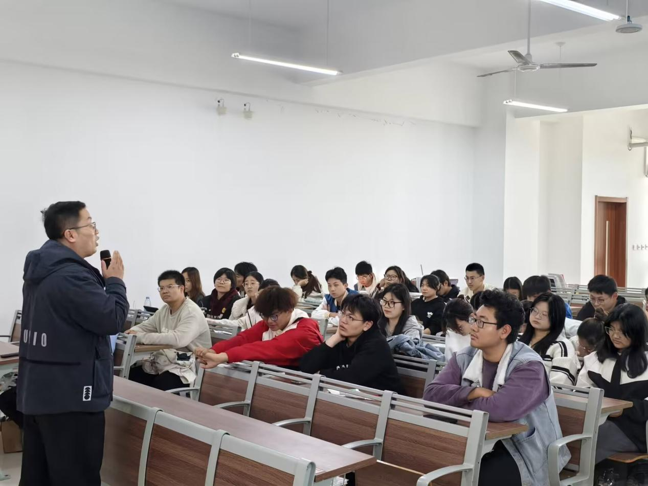 11 月 11 日诸侯快讯入口官网在增信楼516举办优秀校友专题报告会,邀请优秀校友李泰禹返校做报告,2025届毕业生参加
