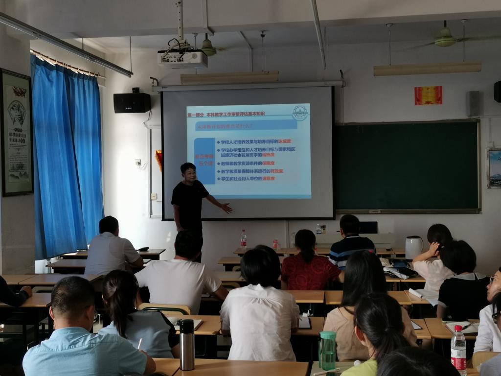 丁老师结合自己多年的教务处长工作和评估专家经验,从开展本科教学审核评估的背景、目的、意义开始,谈到审核评估的指导思想,评估的原则和重点以及专家进校考察的方式等,对审核评估的每个环节和细节都进行了详细的解读。丁老师的报告语言风趣幽默,内涵丰富,指导性强,老师们表示受益匪浅。