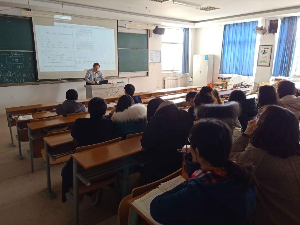 报告会上,Helmut教授首先介绍了Python这一动态数据类型的高级程序设计语言,然后分析了一些有趣的数学问题,这些问题均可以通过简短的计算机程序进行解决。其中,列举的第一个例子与加泰罗尼亚语的数字和根数的计数有关,它可以通过树的递归定义直接实现;第二个例子使用了arctan级数和machin公式计算圆周率的前10000位小数;第三个例子则讨论使用回溯技术来解决数独问题;最后一个例子讨论了反应扩散方程数值解的解析问题。