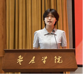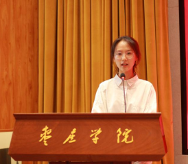 2022级金融外包专业陆庆华作为老生代表发言,2024级应用统计郑利亚作为新生代表发言。