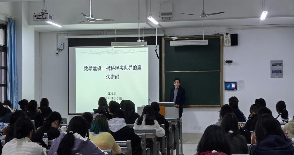 邱汶华老师系统介绍了数学建模竞赛的背景、规则、重要性及我校学生的参赛情况,他结合历年经典赛题,深入浅出地讲解了数学建模的思路、方法和步骤。互动环节中,邱汶华老师对于学生们提出的专业问题给出针对性回答。