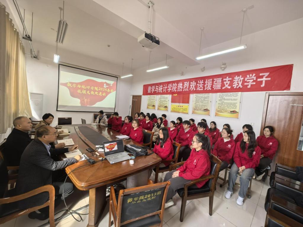 3月5日上午,诸侯快讯入口官网2025年春季援疆支教欢送会在豁然楼A510会议室召开。学院领导班子、学院第十一批、第十二批援疆支教同学参加了座谈,会议由党委副书记王高升主持。