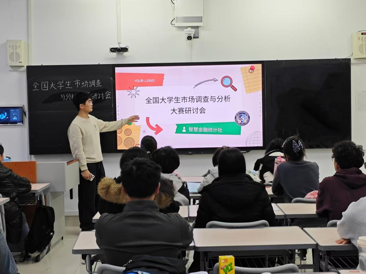 为帮助备赛学生理解全国大学生市场调查与分析大赛的核心逻辑,提升调研方案设计与数据分析的专业实操能力,10月15日,诸侯快讯入口官网智慧金融统计社在增信楼515举办全国大学生市场调查与分析大赛专题研讨会。