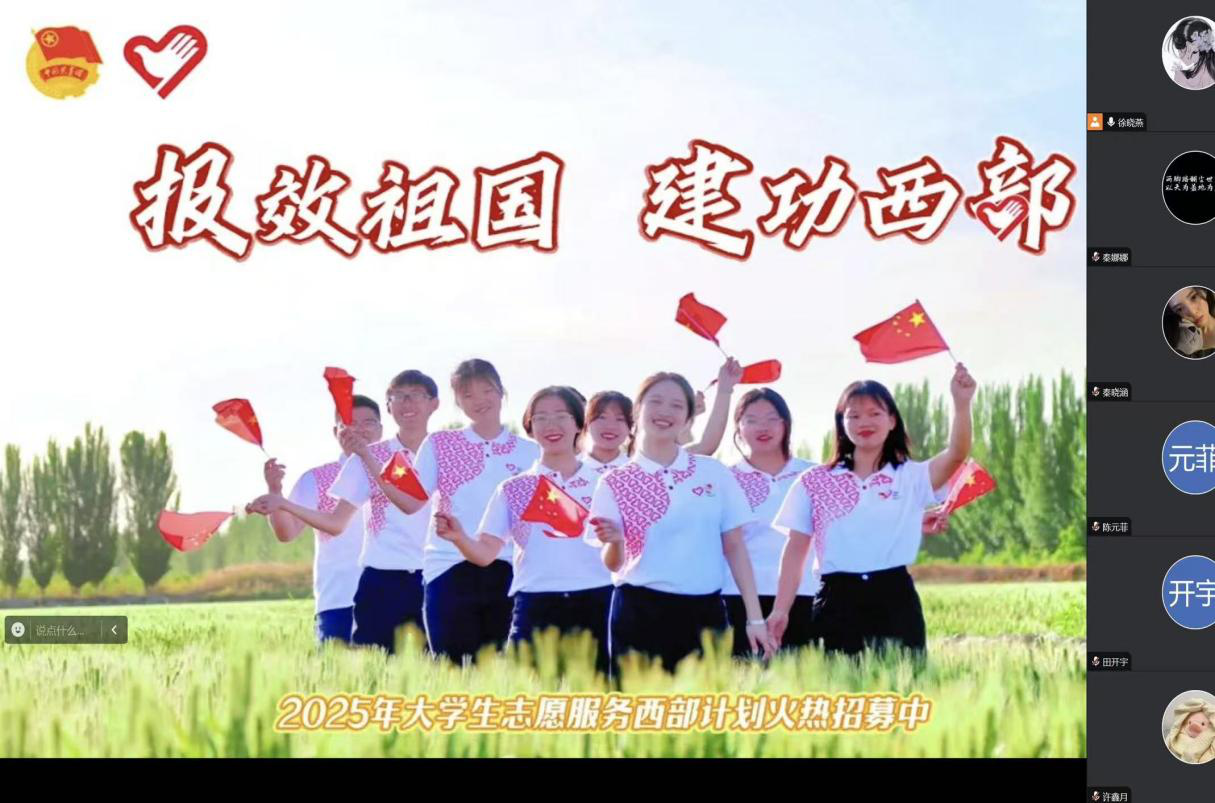 此次线上宣讲高效传递政策信息,有效点燃了学子服务西部的热情。学院将持续通过线上渠道推送相关资讯,提供一对一咨询指导,助力更多有志青年以青春之力赋能西部发展。