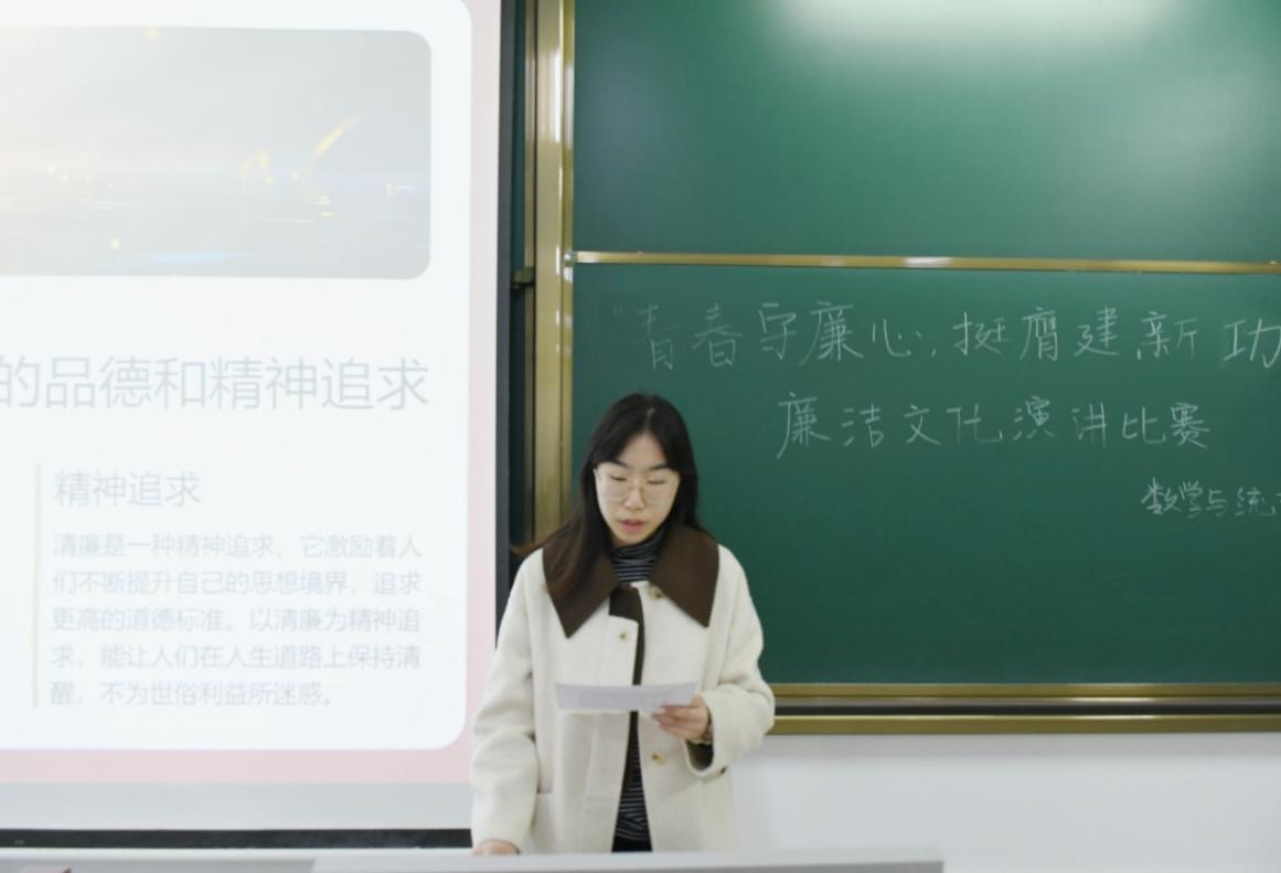 比赛中,参赛选手围绕廉洁主题,他们结合古今案例,联系自身感悟,从时代内涵、青春成长等多个角度展开演讲,语言生动、情感真挚,多维度表达对廉洁文化的理解,展现出良好的演讲风采与思想深度。经过紧张而愉快的评选,尹筱涵、陈换换、高鑫等分获一、二、三等奖。