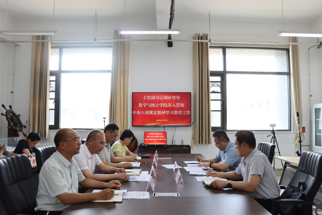 丰雷还对学院基层党建、硕士点建设、毕业生就业、学生管理、课程思政等方面的工作进行了调研指导。