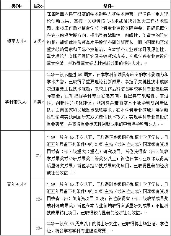 “领军人才”和“学科带头人”可采取全职引进或柔性方式引进。