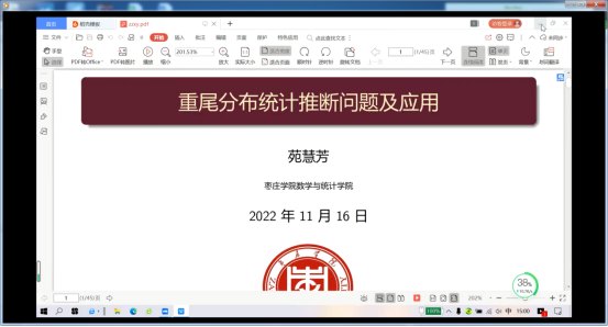 11月16日下午,数学与统计学院举办线上青年学者学术论坛,论坛邀请学院青年教师苑慧芳博士作学术报告。学院部分科研教师和学生参加此次学术论坛