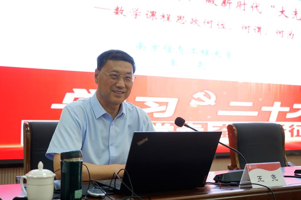王尧教授以《数学课程思政—何位,何谓,何为》为题做了一场热情洋溢的报告。他从“何位,何谓,何维,何畏,何为”五个方面,对应阐释了数学课程思政的“地位、内涵、外延、存在问题、如何做好”五个维度;从“深入挖掘”和“恰当融入”的角度就如何做好数学课程思政提出了独到见解和可操作方案。