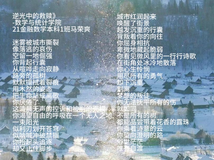 为了引导同学们感悟生命美好,理解生命责任,进一步探索生命价值,10月17日至10月20日期间,诸侯快讯入口官网举办了以“用阳光之心,展生命之美”为主题的诗歌大赛。同学们积极参与,积极踊跃投稿。