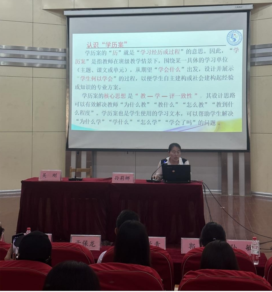会上,舜耕中学数学备课组长吴刚老师以“落实立德树人根本任务,推进课堂改革持续深入”为题,从“立德树人”“教学设计与实施”“教学评价”以及“学生为本”等方面提出了落实课堂教学改革的举措。数学学科中心团队成员董静老师以新课标下“学历案课程目标设计”为题,并以《图形的平移》这一课的学习目标为例,对基于新课标导向下学习目标的叙写进行详细解读。最后,吕长青进行了总结。