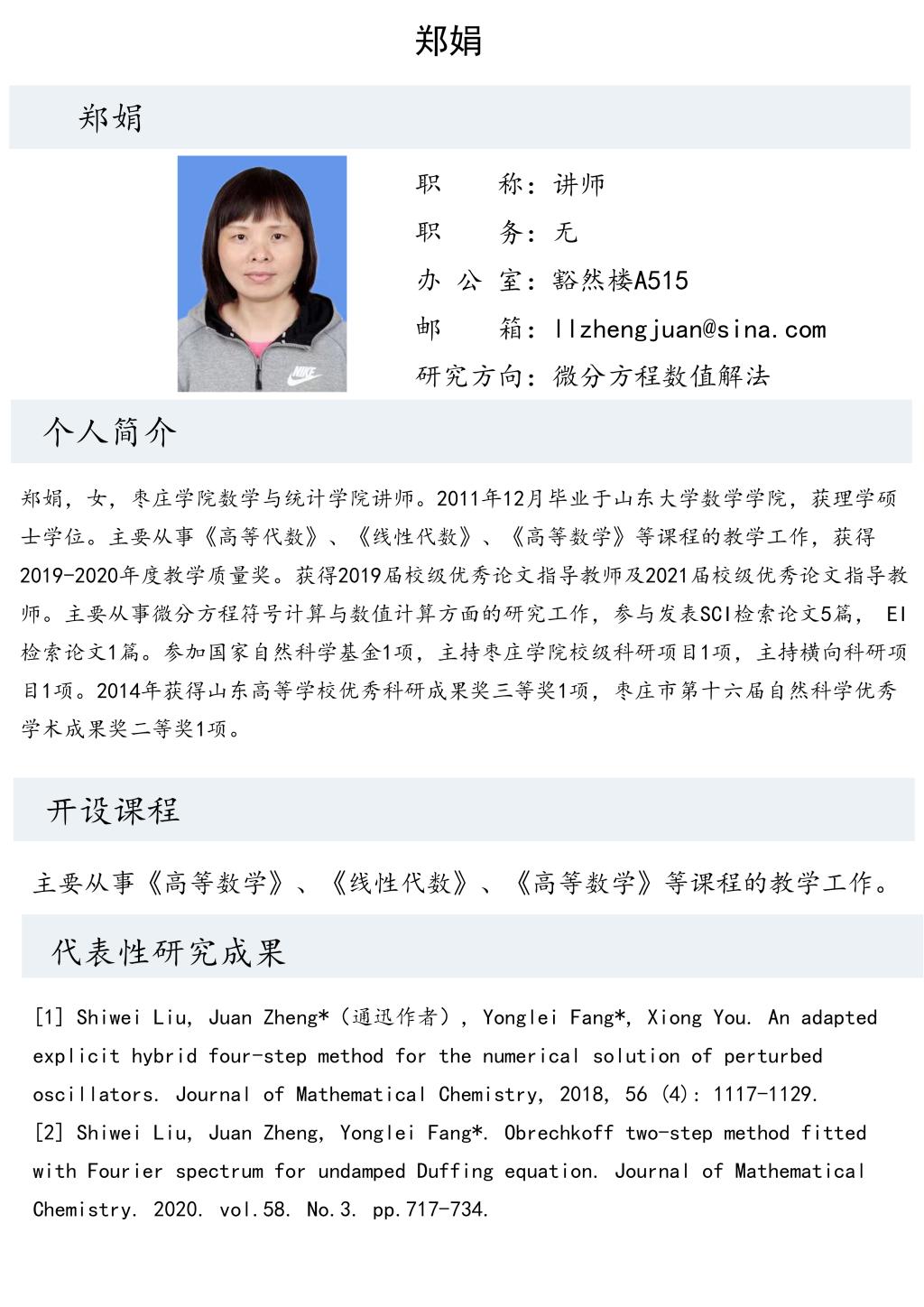 郑娟老师个人简介