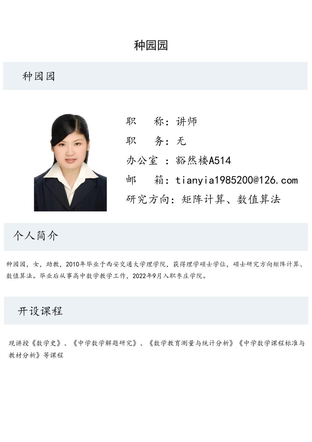 种园园老师个人简介