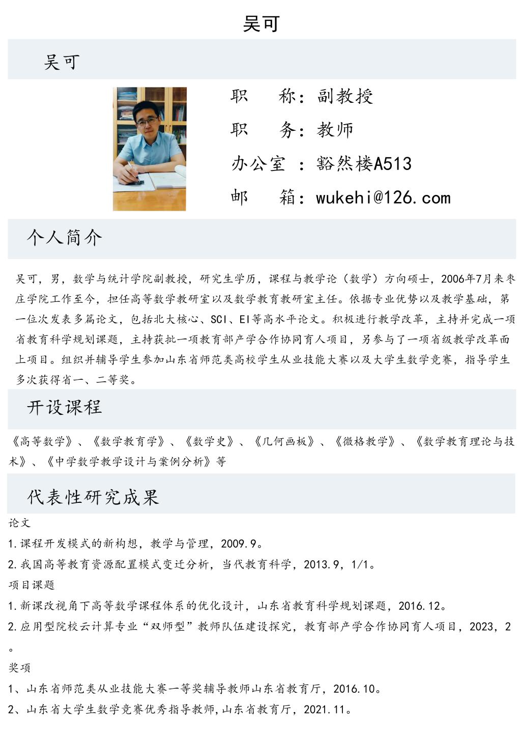 吴可老师个人简介