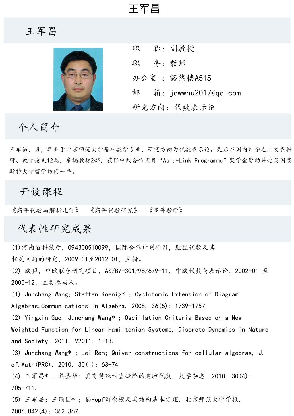 王军昌老师个人简介