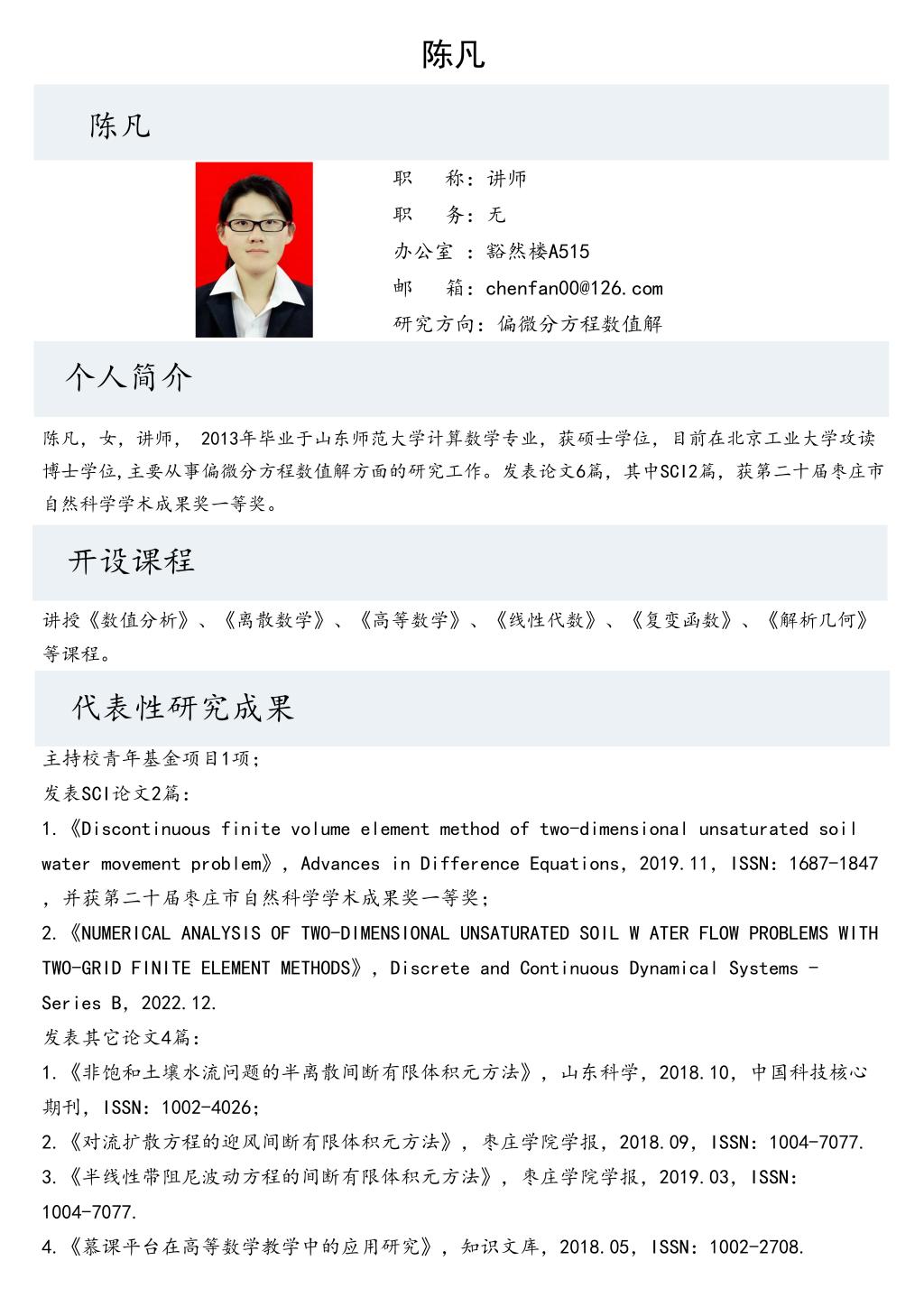 陈凡老师个人简介