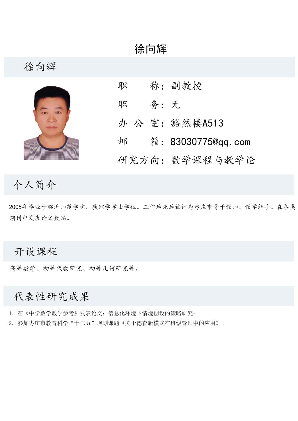 徐向辉老师个人简介